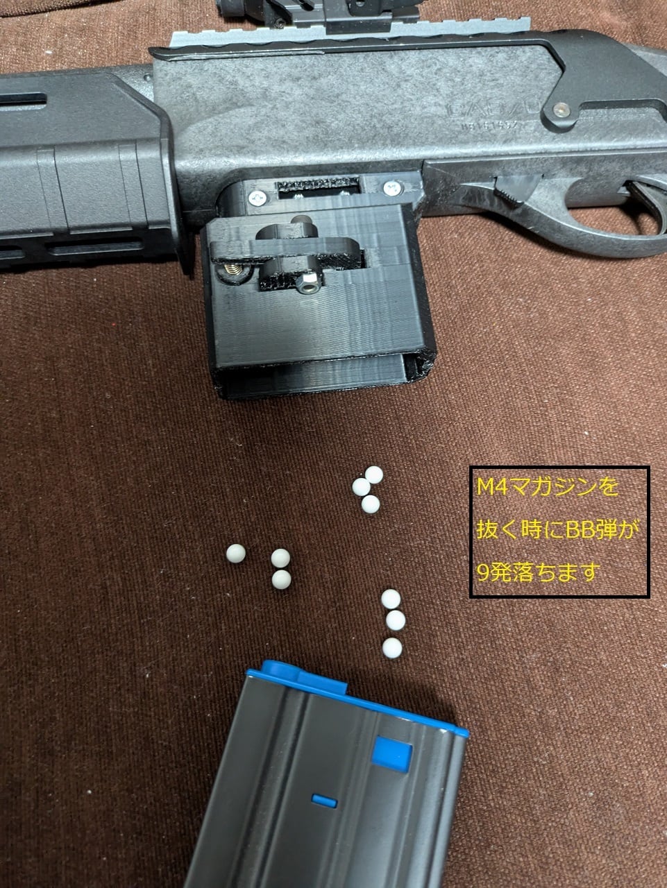 ※M4マガジンを抜く時にBB弾が9発落ちます。