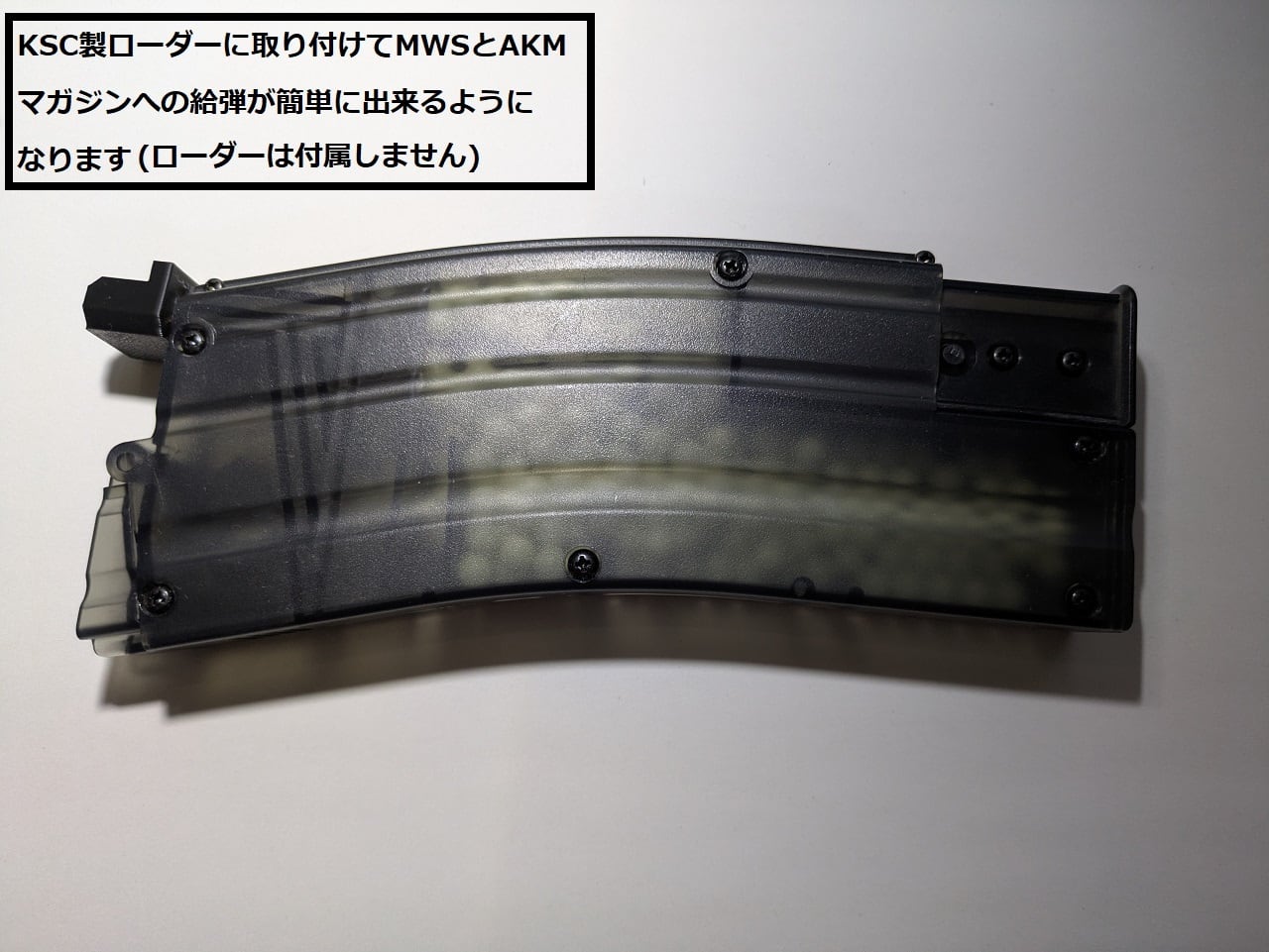 本品を給弾口に装着することで東京マルイMWSとAKMマガジンへの給弾が